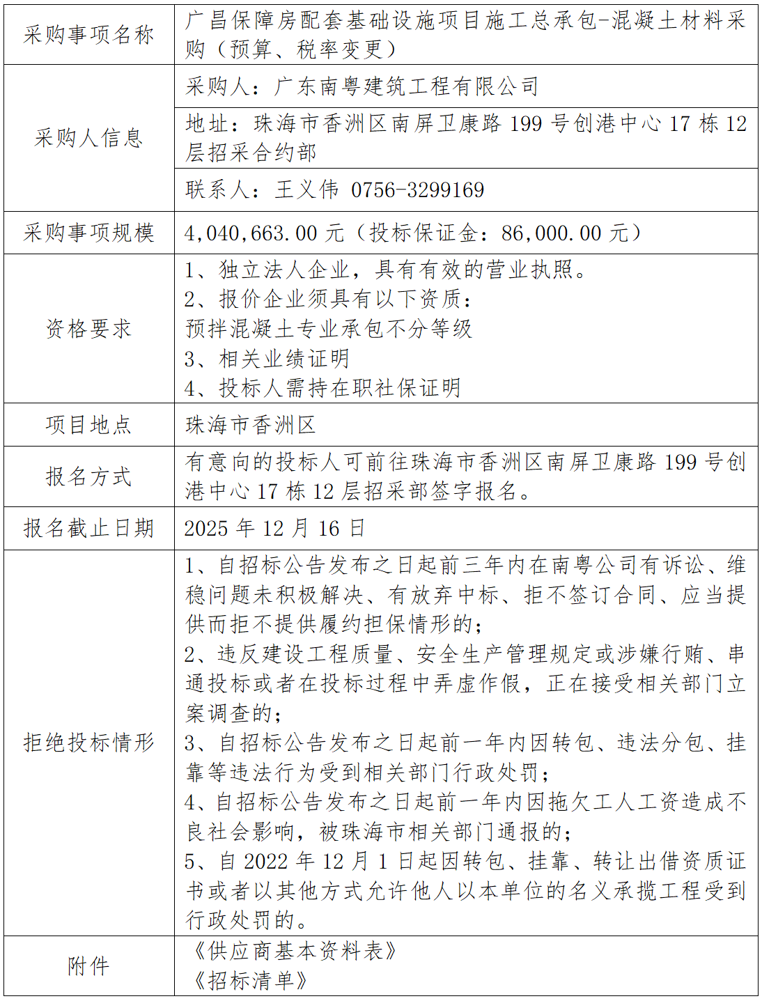 廣昌保障房配套基礎(chǔ)設施項目施工總承包-混凝土材料采購(預算、稅率變更) 專欄:工程招標 發(fā)布日期: 2025-12-11 作者:招采管理中心 附件:供應商基本資料表 附件:廣昌保障房配套基礎(chǔ)設施項目施工總承包-混凝土材料采購招標清單 返回列表 上一篇:仁恒星園-翠前路交翠峰路遷移交通信號燈項目 下一篇:廣昌保障房配套基礎(chǔ)設施項目施工總承包-地材材料采購招標(延期掛網(wǎng))