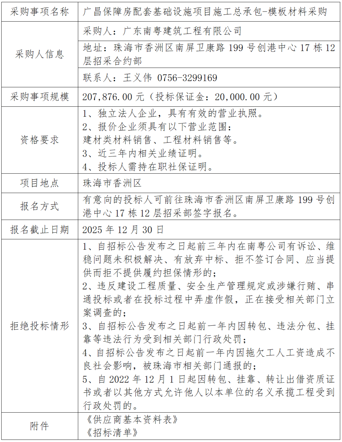 廣昌保障房配套基礎(chǔ)設(shè)施項(xiàng)目施工總承包-模板材料采購