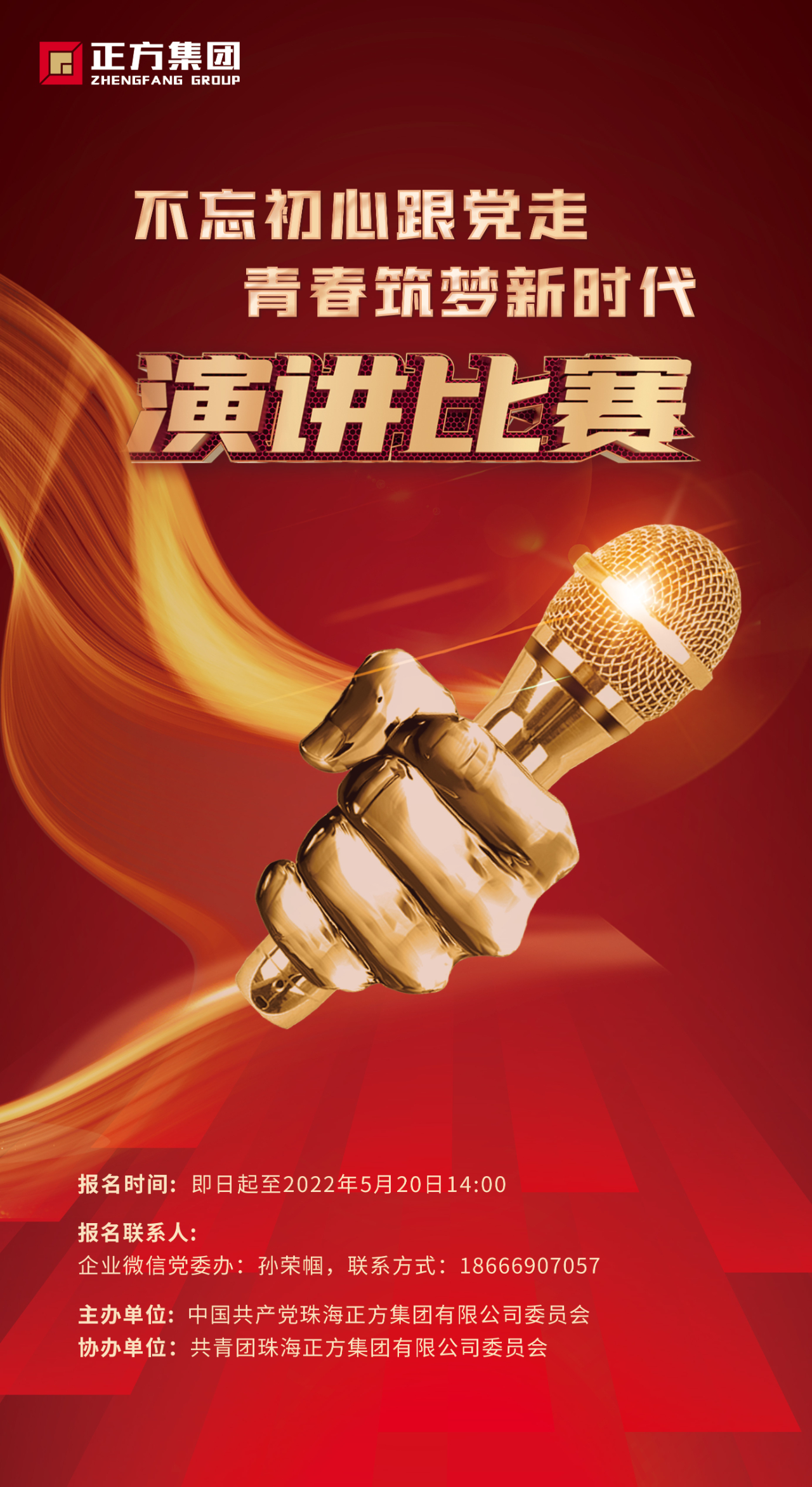 “青年興則國(guó)家興,青年強(qiáng)則國(guó)家強(qiáng)?!睘榧?lì)正方集團(tuán)青年在實(shí)現(xiàn)中華民族偉大復(fù)興的時(shí)代洪流中踔厲奮發(fā)、勇毅前進(jìn),正方集團(tuán)黨委將于2022年6月2日開(kāi)展“不忘初心跟黨走,青春筑夢(mèng)新時(shí)代”為主題的演講比賽。