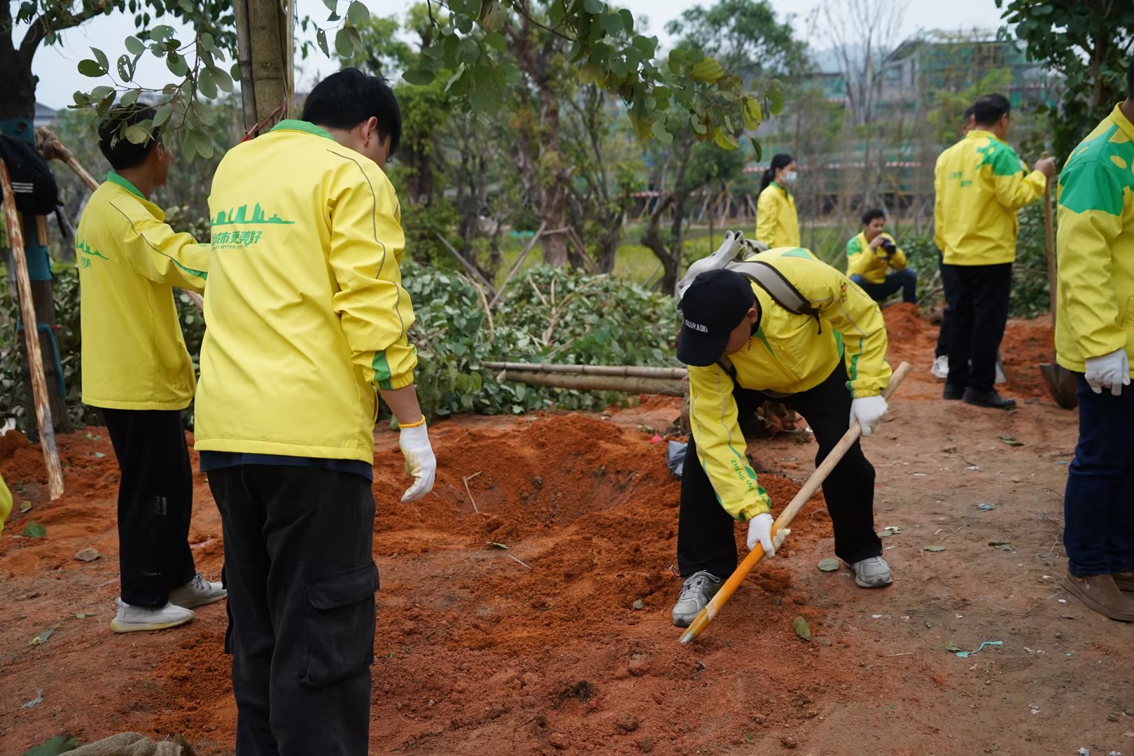 經(jīng)過專業(yè)技術(shù)人員的培訓(xùn)后,大家拿上鐵鍬、樹苗等物資紛紛前往指定區(qū)域植樹,活動現(xiàn)場一片熱火朝天。大家擼起袖子鏟土、挖坑、扶苗、培土、澆水、施肥,各個環(huán)節(jié)默契配合、井然有序,共同打造出一片“正方青年林”。