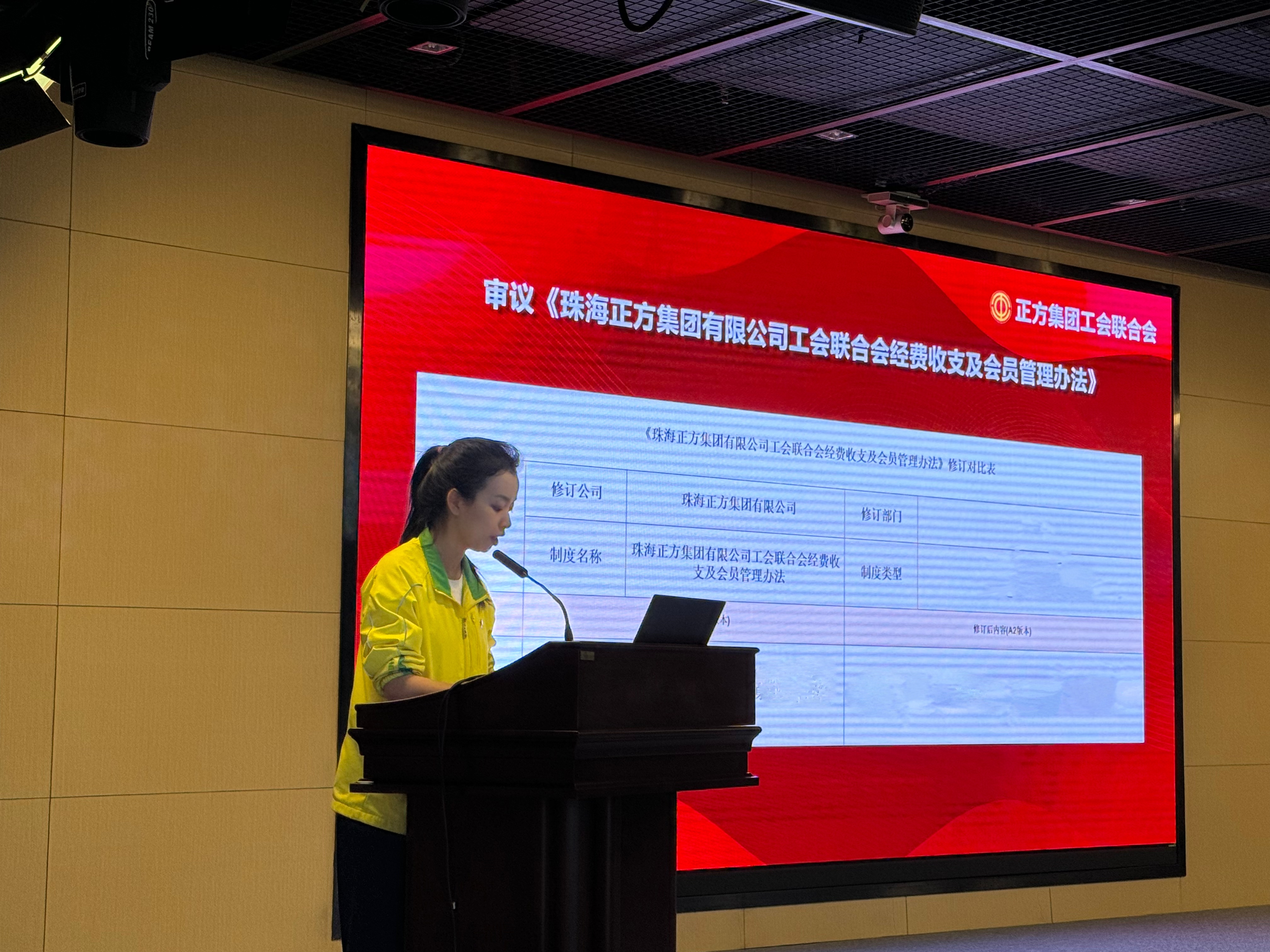 △黨委辦群團(tuán)副經(jīng)理黃思雅匯報《珠海正方集團(tuán)有限公司工會聯(lián)合會經(jīng)費(fèi)收支及會員管理辦法》