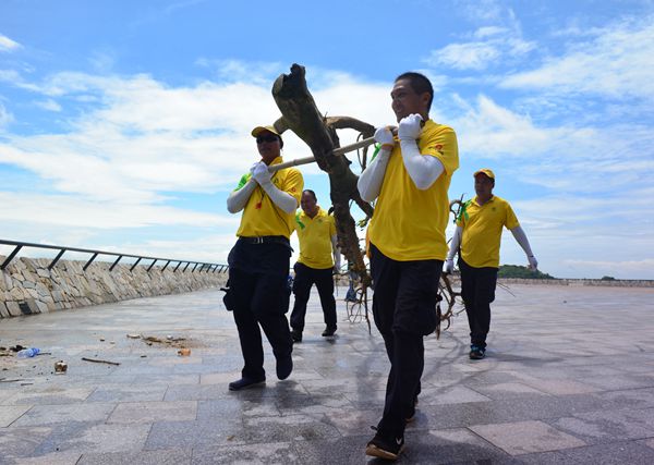 7月份以來(lái),受珠海地區(qū)暴雨大風(fēng)的極端天氣影響,大量的水浮蓮、木頭、竹竿、白色泡沫塊等垃圾也隨之而來(lái),堆積到城市客廳、香爐灣、鳳凰灣三大沙灘。正方公共運(yùn)營(yíng)公司緊急集結(jié)公司員工開展了持續(xù)將近一個(gè)月的水浮蓮清理工作。海邊垃圾清理與道路清掃保潔最大的不同,就在于海邊垃圾都是漂浮在海面或夾在亂石堆里,無(wú)法進(jìn)行機(jī)械清理,只能靠人工一個(gè)一個(gè)地?fù)焓?,被稱之為“小黃人”的正方公共運(yùn)營(yíng)公司員工任勞任怨、不辭辛苦地將垃圾一籮筐一籮筐地慢慢抬上岸邊。而且,海岸垃圾反復(fù)性強(qiáng),頭一天剛清理干凈的沙灘,晚上漲潮之后又會(huì)被海浪帶來(lái)的垃圾填滿。
