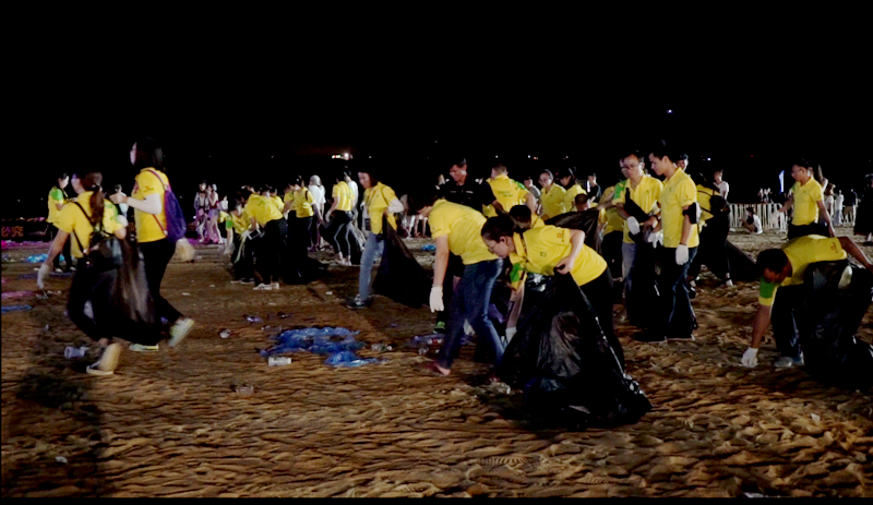 在音符停止跳躍之前,”小黃人”早已在舞臺前集結(jié)待命,在人群散去之后馬上進行拉網(wǎng)式沙灘清潔工作。游客們離場,帶走的只有美好的回憶,留下的只有腳印。