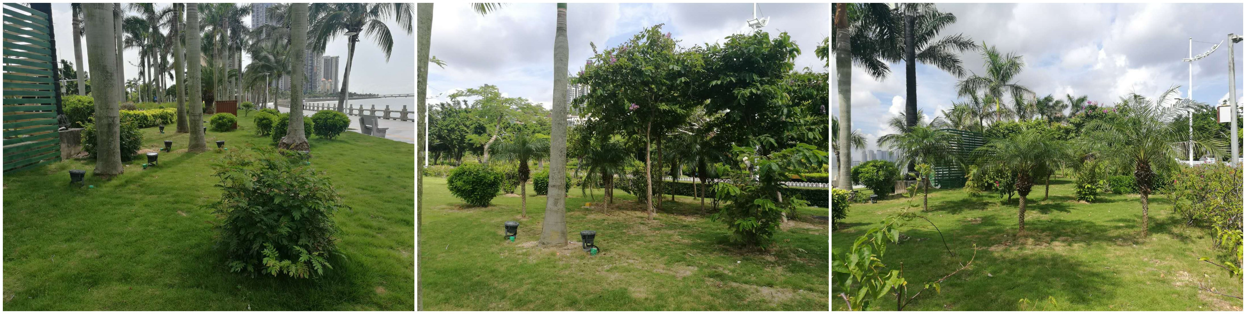 此次整治提升的情侶路(全球通大廈至拱北口岸段)為整條情侶路改造提升的示范段工程,位于珠海市香洲區(qū)情侶南路東南方位的其中一段,是情侶路賞海觀橋、健步休閑最佳路段??傞L約4.5千米,寬24米,總面積約為10.8萬平方米。由于受去年雙臺風“天鴿、 帕卡”影響,該路段喬木斷頭、殘枝、枯枝、偏冠、傾斜現(xiàn)象普遍,且存在地面局部沉降錯位、 斷裂破損現(xiàn)象,樹種搭配及植物組景過于紛雜、叢生植物慌亂、養(yǎng)護系統(tǒng)老化、分布不合理等問題,嚴重影響了沿線景觀的觀賞性。