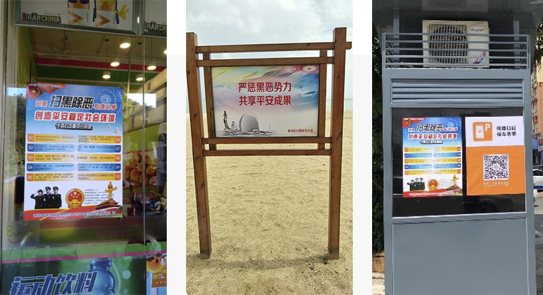 △正方控股公司以所管養(yǎng)的社區(qū)公園、情侶路沿線、商業(yè)小街及施工現(xiàn)場(chǎng)等為載體進(jìn)行掃黑除惡宣傳
