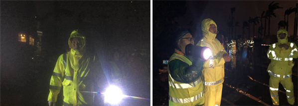 16日晚,正方控股總經(jīng)理唐亮帶領(lǐng)各歸責(zé)片區(qū)領(lǐng)導(dǎo),分17組對各轄區(qū)開展全面巡查,清點(diǎn)臺風(fēng)受損情況,解決突發(fā)事故,做好各項(xiàng)防御工作。同時,由正方商貿(mào)、正方金投、正方城建板塊共342人組成的應(yīng)急隊(duì)于16日19:00抵達(dá)情侶南路沿線及興業(yè)路開展路障清理和應(yīng)急救援工作,力爭第一時間助力珠海道路解封。