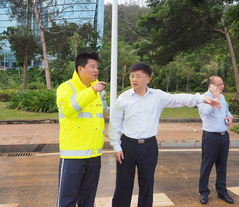 17日下午,珠海香洲區(qū)委書記顏洪一行巡查情侶路災(zāi)后復(fù)產(chǎn)工作,慰問奮戰(zhàn)在一線的正方應(yīng)急隊(duì)伍,對正方控股積極參與災(zāi)后復(fù)產(chǎn)表示肯定,路面清障效果理想。