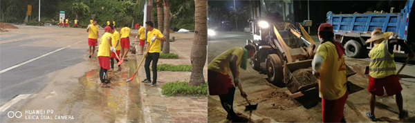 “為了能夠盡快修復(fù)情侶路,保障中秋國(guó)慶假期的路面暢通,我們救生隊(duì)伍全員都參與了情侶路的修復(fù)工作,從9月16日晚開(kāi)始,日夜兼程,全力以赴。截止至20日,仍然有三分之二的隊(duì)友堅(jiān)守在復(fù)產(chǎn)第一線(xiàn)?!眳⑴c此次災(zāi)后復(fù)產(chǎn),不小心受傷的正方救生隊(duì)班長(zhǎng)何鵬飛表示,“支援的時(shí)候雖然辛苦,但是自己能夠參與其中,為珠海的城市修復(fù)貢獻(xiàn)一份力量,覺(jué)得發(fā)揮了自己的價(jià)值,非常有意義。”