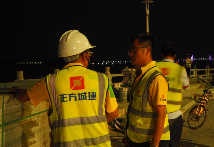 臺(tái)風(fēng)過(guò)境當(dāng)晚,正方城建公司迅速反應(yīng),連夜組織各部門員工前往受損嚴(yán)重的情侶路段進(jìn)行搶修支援。彼時(shí),“山竹”仍未完全退卻,狂風(fēng)暴雨里的海邊到處一片狼藉,受損路段仍未恢復(fù)通電。一片黑暗之中,他們卻組織有序地鋸木、鏟泥、清掃,即使身上的雨衣早已被雨水浸透,忙到連水都來(lái)不及喝一口,依然不停歇地與正方控股的應(yīng)急隊(duì)員堅(jiān)守奮戰(zhàn)在災(zāi)后復(fù)產(chǎn)的第一線。