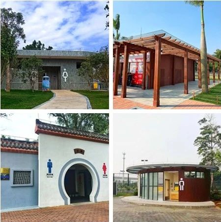 △“美麗公廁”一覽(從左至右分別為:海天驛站公廁、海霞驛站公廁、梅華城市花園公廁、中廣社區(qū)公園公廁