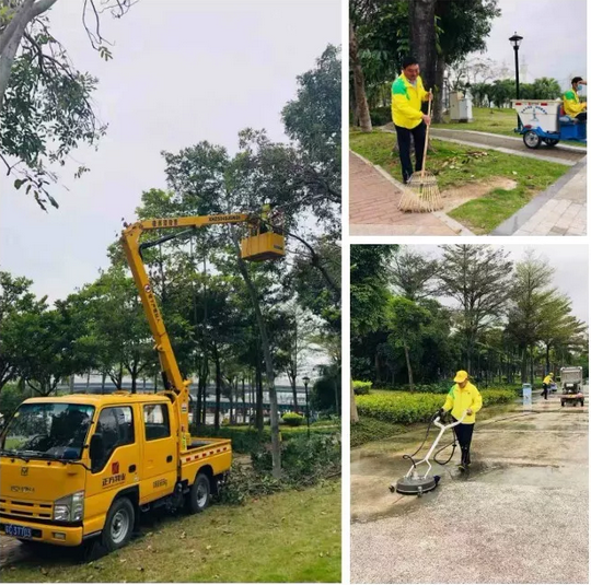 草坪上、樹林中,隨處可見工程綠化組的身影,除雜草、修剪草坪、修剪樹枝、高枝修剪,哪一項工作都難不倒他們。清潔組的成員也忙碌在公園各處,地面和衛(wèi)生間經(jīng)過沖洗后煥然一新。