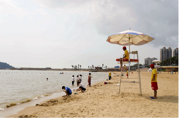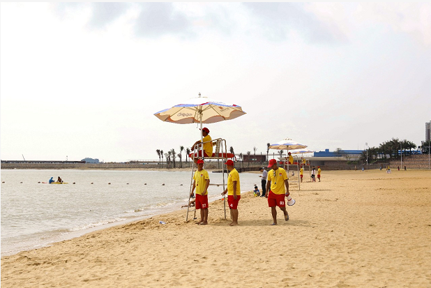 在“城市客廳”按照水域的安全條件,劃分出“安全游泳區(qū)”,并增設(shè)了安全繩。市民、游客親水區(qū)域,設(shè)立了多處“安全提示”、“入海安全須知”等提醒標識。濱海泳區(qū)還配有18名持證上崗的救生員,24小時候守護市民、游客安全。