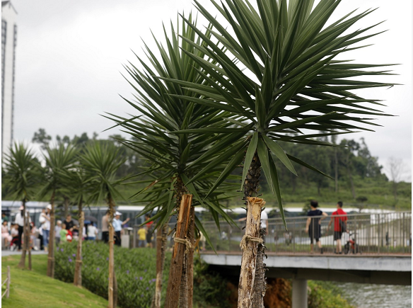 蘇瑞敏說,結合景觀的需要,近期,香洲正方將近200株大小不一的劍麻、針葵、龍露兜等樹木搬離了原本在前山立交橋底、珠海大道側分帶、梅華路與迎賓路交界處繁密雜亂的“舊家”,它們成為了香山湖大家庭中的新成員。太湖石搭配這些從主干道路渠化島、立交橋底周邊移植而來的喬灌木,形成了經(jīng)濟節(jié)約同時也極具特色的園區(qū)景觀。