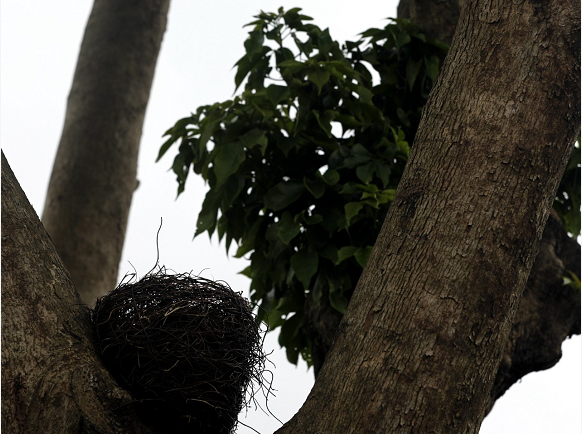 “哇!媽媽快看,樹上有個鳥巢!”采訪過程中,記者突然聽到身邊傳來孩子的聲音?;仡^只見一名男童興奮地朝園區(qū)內的一棵香樟樹跑了過去。