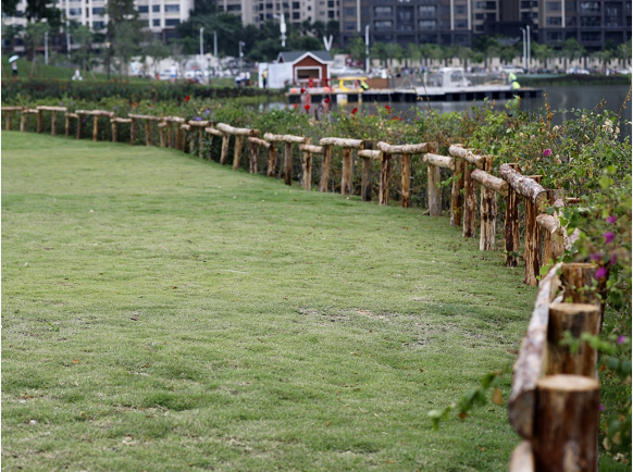 除了別具特色的鳥巢燈,為保障入園市民的人身安全,香洲正方還在園區(qū)沿湖周邊多處安裝了長約350米古樸自然的防護欄,扎實的麻繩、古樸的枝干,不僅提升了市民游客入園游玩的安全性,更是讓園區(qū)多了一份清新自然的田園之風?!斑@些防護欄都是我們自行修建,用適合南方天氣的松樹干制成,不僅節(jié)約成本,且與周邊環(huán)境、景觀效果融為一體?!碧K瑞敏表示。