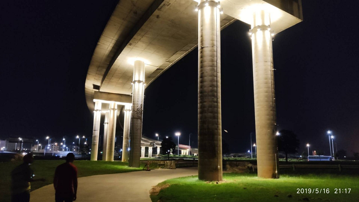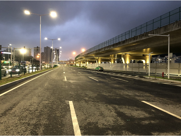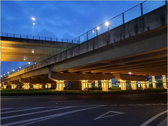 據(jù)珠海市香洲正方控股有限公司總經(jīng)理助理張有文介紹,立交橋燈光亮化工程包括功能性景觀照明和裝飾性景觀照明兩部分;除人行通道區(qū)域外,其他區(qū)域都屬于景觀照明的范圍。香洲正方通過在橋墩側面設置暖色調壁燈,將橋身以及周圍環(huán)境點亮,不僅實現(xiàn)了沿線夜景的可觀性,點綴了珠海夜景,也方便了車輛駕以及行人通行,橋底的安全性也大為提高。