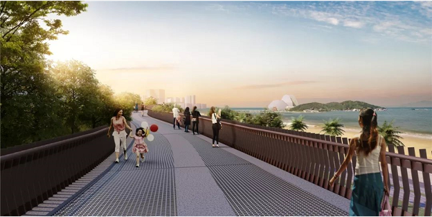 步道:沿翠湖建一條穿過海濱北路的下穿隧道,并通過人行天橋跨情侶路到達(dá)沙灘。這樣,行人便可直接從沙灘到達(dá)山體。