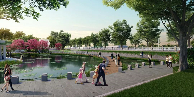 翠湖周圍:將建具有文化底蘊(yùn)的嶺南風(fēng)情園林小品建筑,翠湖中將飼養(yǎng)觀賞魚和習(xí)水性植物,營(yíng)造出動(dòng)物和植物互生互養(yǎng)的生態(tài)觀賞水體。