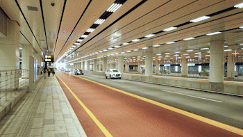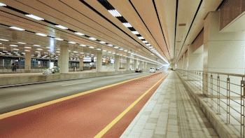 地下通道主道為雙向六車道的車輛快速通行道,兩側(cè)保留原有公交站點,并設有港灣公交專用道。輔道劃分出租車上客區(qū)、出租車下客區(qū)、社會車輛上下客區(qū)和歧關(guān)大巴上客區(qū)四大功能區(qū)。