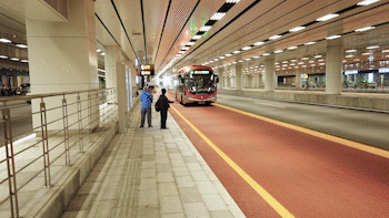 其中,北側(cè)輔道作為出租車上下客專用道,嚴禁社會車輛、大巴進入;南側(cè)輔道供社會車輛、大巴上下客使用,嚴禁出租車進入。