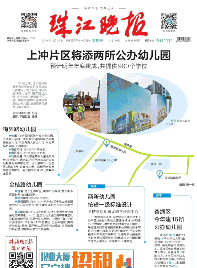 兩所幼兒園均位于上沖片區(qū)由香洲區(qū)教育局主持建設(shè),珠海市香洲正方控股有限公司代建。按照省一級幼兒園標(biāo)準(zhǔn)設(shè)計(jì),各容納15個(gè)教學(xué)班,預(yù)計(jì)2020年底竣工,爭取2021年投入使用。