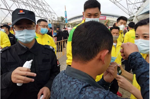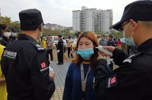 香洲正方撤場支援人員到場集合,花市撤場工作井然有序展開。在花市每個出入口,均有工作人員為進出的撤場人員進行體溫檢測,并提供口罩。