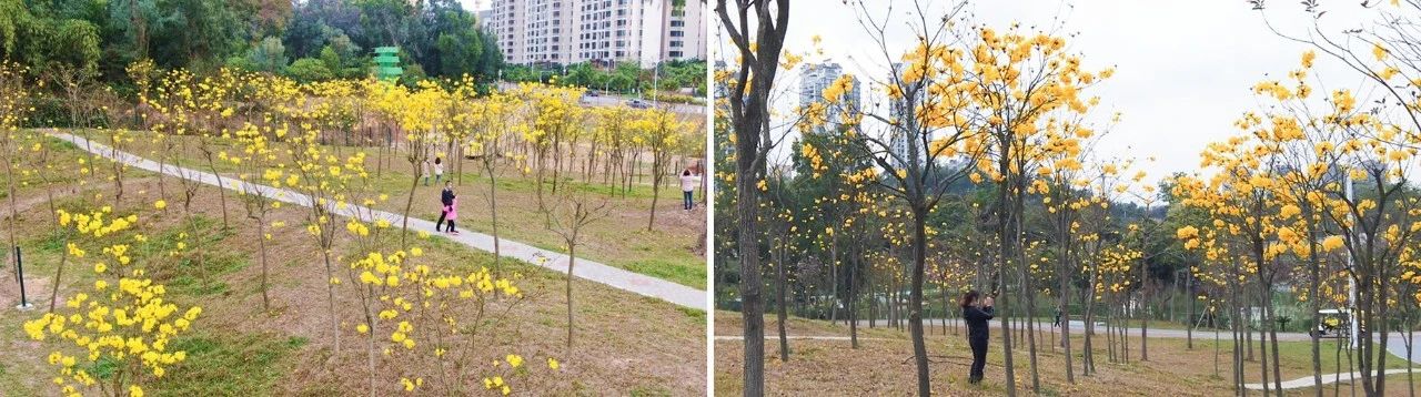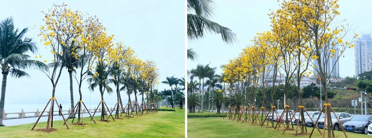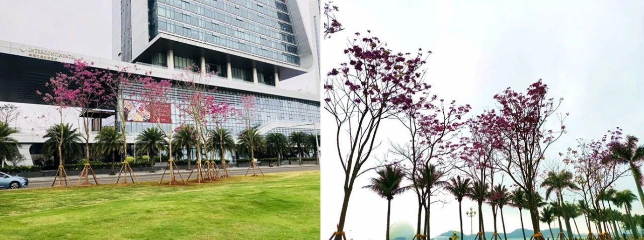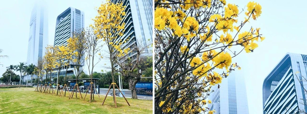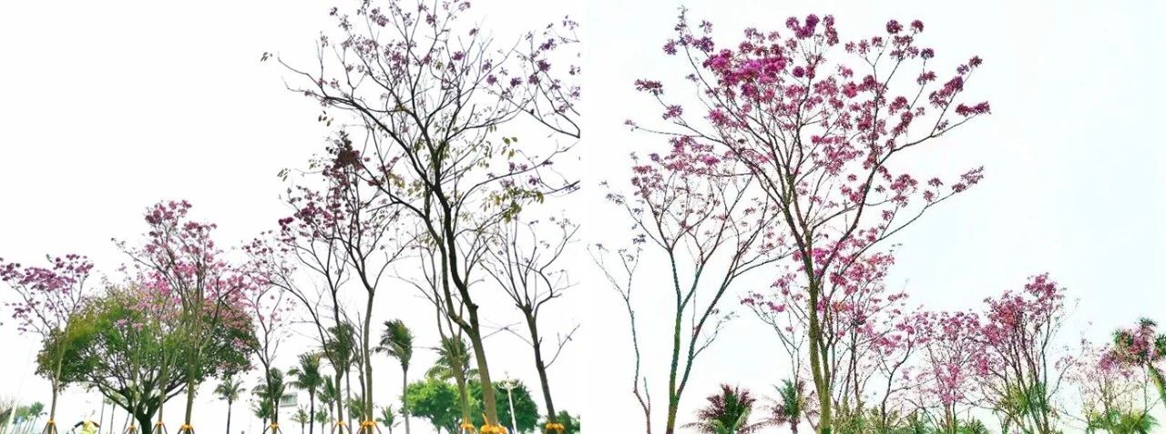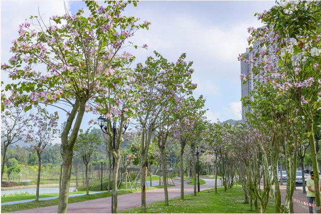 暖暖的黃花風(fēng)鈴木和紫花風(fēng)鈴木,浪漫溫柔的宮粉紫荊,還有靜待夏日到來將一展身姿的小葉紫薇,正沐浴著春風(fēng)雨露,努力讓未來更鮮艷。