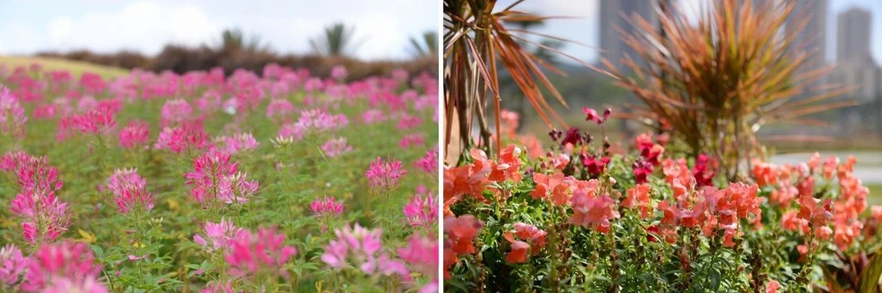 繁花在珠海大地上悄然綻放,公園里的植物伸展出新芽,綠草如茵,鮮花如瀑。