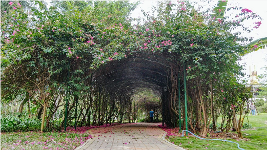 打造大面積花海,營造春有宮粉紫荊、黃花風(fēng)鈴木、粉花風(fēng)鈴木。夏有火焰木和大葉紫薇,秋有桂花、荔枝林和香蕉林的豐富景觀,讓梅華城市花園成為一座年年有花、季季有花,名副其實的“城市花園”。