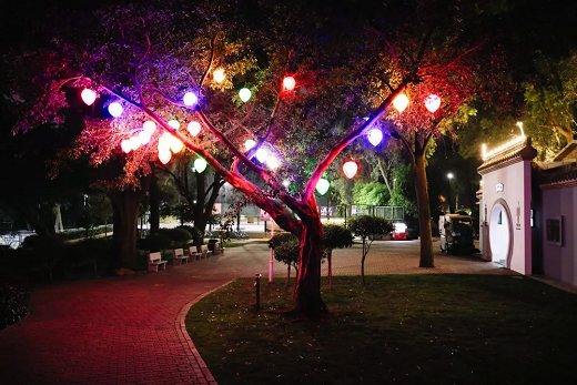 原梅華城市花園路燈使用時間長,燈光暗淡發(fā)黃,存在一定安全隱患,給市民游客夜間游玩帶來不便。此次燈光提升遵循不擾民,不造成光污染的原則,利用不同類型的燈光,有效提高照明效果,營造出頗具層次感的公園夜景。