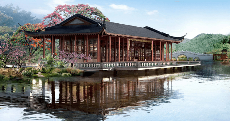 香洲正方利用地勢(shì)依水而建環(huán)湖碧水親水棧道,打造古色古香的水軒、跌水、景亭等。以“最小干預(yù)最大促進(jìn)”原則,將對(duì)生態(tài)的干擾降到最低,并最大限度維護(hù)場(chǎng)地原有生態(tài)格局,促進(jìn)資源的高效利用與循環(huán)再生。