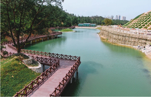 “這里的每一處規(guī)劃設(shè)計(jì),都可謂‘用心良苦’”,香洲區(qū)委常委、副區(qū)長彭甦介紹,“沒砍一棵樹、也沒買一棵樹”,秉承“可達(dá)、可游、可憩”和“安全、生態(tài)、節(jié)約”的理念打造香山湖二期。