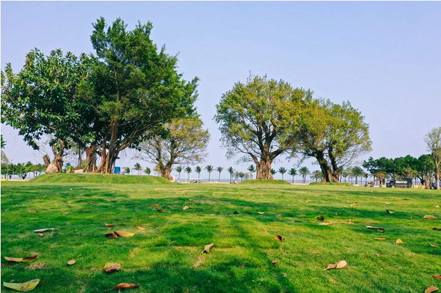 遠(yuǎn)遠(yuǎn)望去一片碧綠,宛如身處在森林之中,靜守美好。目前,木棉大道和紫薇大道路面硬化已完成,兩側(cè)路燈都已安裝完畢;木棉、大王椰子、欒樹(shù)、樟樹(shù)、紅花紫荊等賞花觀景帶已現(xiàn)雛形;停車場(chǎng)已完成地面平整。