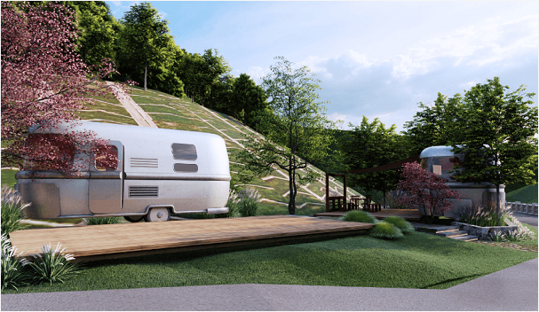 房車露營文化展示體驗區(qū),位于驛站東北側(cè),包含2臺8米房車及1個配套集裝箱。有獨立院落,可以布設(shè)營地生日party、周年慶活動等等,體驗極具魅力的營地文化。