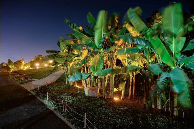 在植物方面,對(duì)園內(nèi)原有樹(shù)木進(jìn)行統(tǒng)籌安排、科學(xué)調(diào)配,不砍伐一棵樹(shù),也不新購(gòu)一棵樹(shù),尊重每一棵植物的生命,沿漫步道打造出極具本地特色的綠化景觀效果。