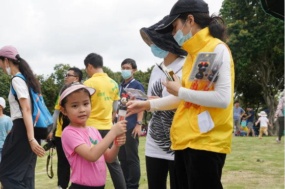 在工作人員的引領(lǐng)下,小朋友們積極地參與防疫知識問答,答對了才能領(lǐng)任務(wù)卡開始他們的“打卡活動”。小朋友們滿心期待的揣著任務(wù)卡,小手拉大手,牽著爸爸媽媽,向香山湖公園荔枝林出發(fā)!