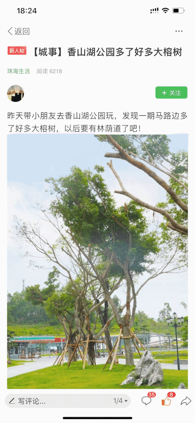 開放近一個(gè)月的香山湖公園二期和海天公園,環(huán)境優(yōu)美、草木蔥蘢。徜徉園中,造型獨(dú)特的酒瓶樹、蒼勁古雅的日本黑松、蔥郁茂盛的小葉榕、高大挺拔的木棉樹、華麗飄逸的大葉紫薇......風(fēng)姿各異的樹木,不僅是公園里的美麗風(fēng)景,也是珠海發(fā)展的綠色財(cái)富,體現(xiàn)著香洲正方統(tǒng)籌調(diào)配、節(jié)約高效的理念。