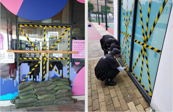 正方商業(yè)管理各片區(qū)負(fù)責(zé)人分別對城市客廳、紅荔鄰里中心、正方賽伯樂眾創(chuàng)大廈、聯(lián)安鄰里中心、正方商業(yè)小街進(jìn)行臺風(fēng)防御的三防檢查,將門窗及物品進(jìn)行捆綁、加固及警示。