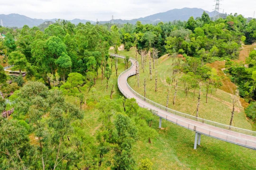 目前,在板樟山回歸亭上方的板樟山山地步道示范段,環(huán)山步道已經(jīng)初具雛形,3.6米寬的步道走起來相當寬闊平穩(wěn)。步道的海拔高差將近130米,站在山地步道上,向前遠眺,視野開闊,港珠澳大橋雄姿、珠澳兩地城市風光盡收眼底,觀景位置極佳。