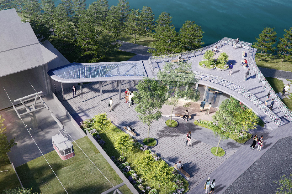 板樟山山地步道包括空中步道、森林步道、景觀橋、山頂驛站、無障礙垂直交通系統(tǒng)設施等子項及配套的景觀照明、安監(jiān)系統(tǒng)、標識系統(tǒng)、休憩設施、綠化修復等。