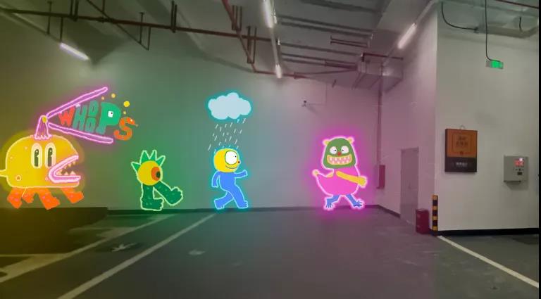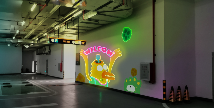 車輛駛?cè)胪\噲?chǎng)即可,get這一幕幕五彩繽紛、奇趣可愛的墻景。各種卡通搞怪的形象在霓虹燈的展示下惟妙惟肖、栩栩如生。隨手一拍,皆成“制霸”朋友圈的大片~