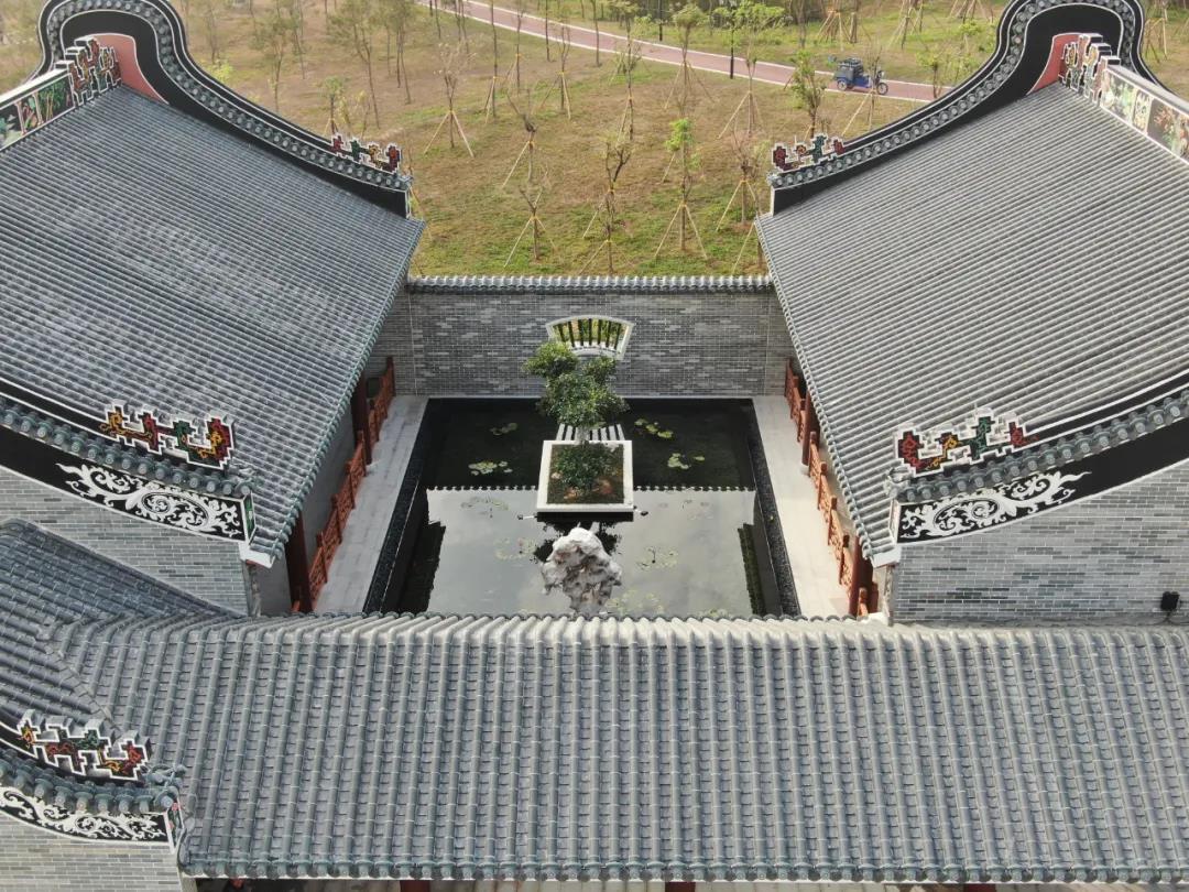 充滿(mǎn)嶺南建筑特色的鑊耳山墻、色彩艷麗的灰塑博古脊、工藝精美的木雕、磚雕、石雕等布滿(mǎn)整個(gè)三期廣場(chǎng)。