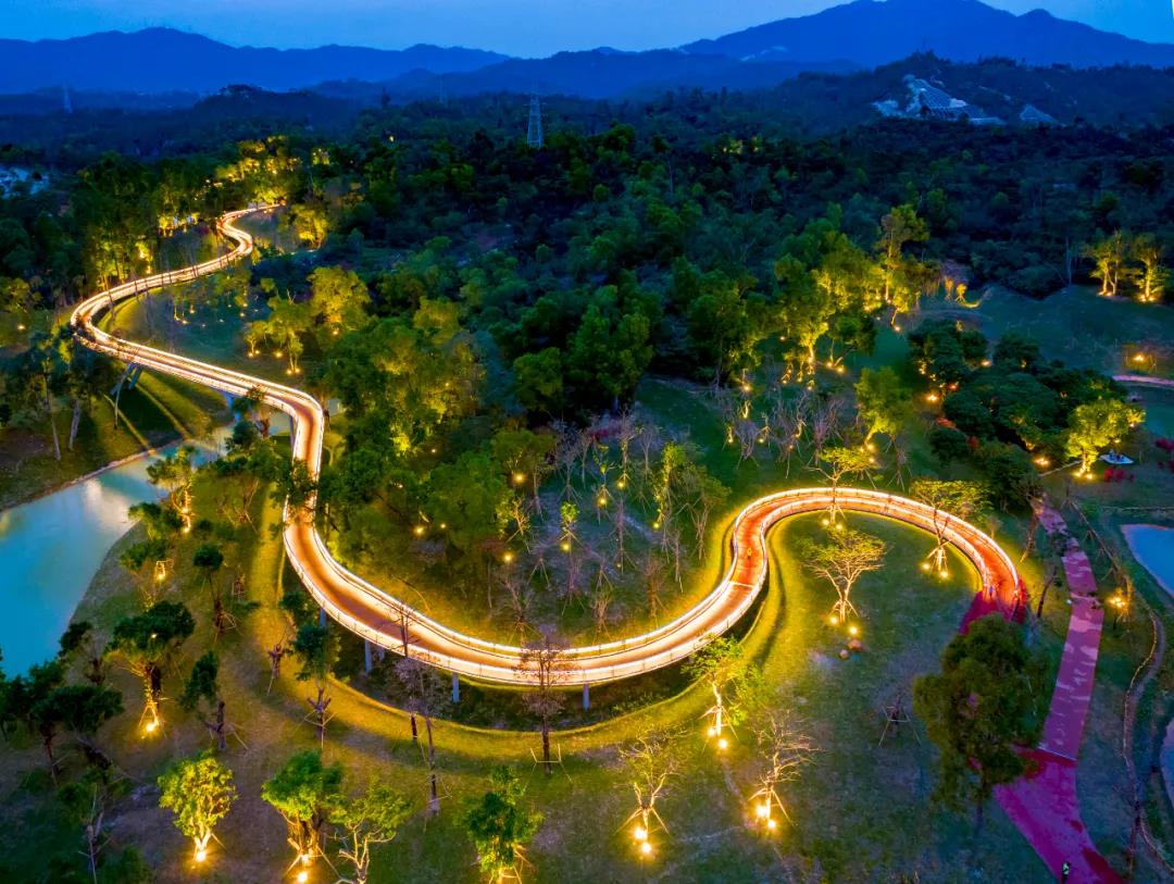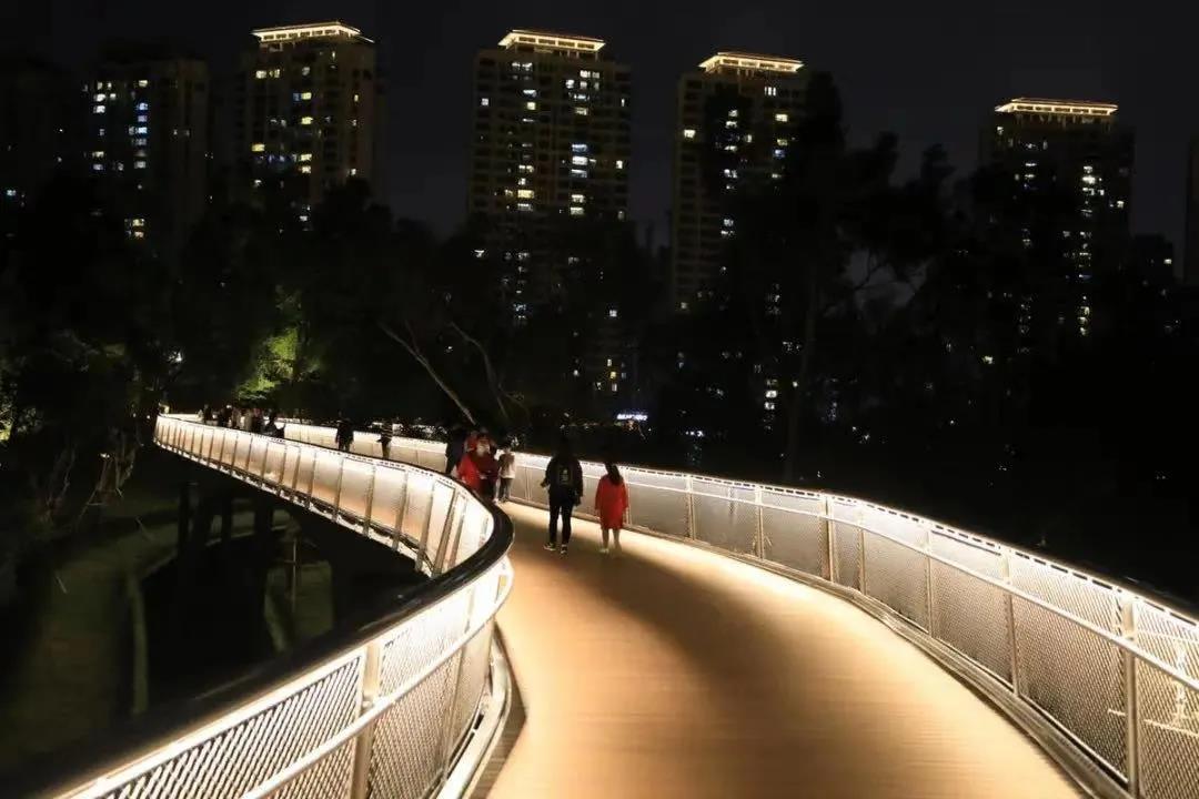 “云棧道”采用1200米暗藏?zé)魩д彰鳎?span>與棧道旁樹(shù)林中用深埋隱藏方式安裝的80余盞樹(shù)燈、鳥(niǎo)巢燈相融合,達(dá)到見(jiàn)光不見(jiàn)燈的效果。