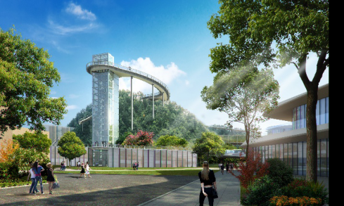 棧道還通過設(shè)置電梯、螺旋樓梯等實(shí)現(xiàn)無障礙通行。例如雞公山示范段就安裝了電梯,將海天公園的人流引入香山云道。