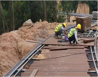 同時運(yùn)用架橋機(jī)技術(shù),工人先將物料運(yùn)輸?shù)街付ǖ攸c(diǎn),再通過橋面運(yùn)輸小車二次運(yùn)輸,避免大型設(shè)備直接開進(jìn)山里,最大限度保護(hù)原始山體和植被,對原有山體內(nèi)植被綠化升級的工作也在同步進(jìn)行,這將達(dá)到防止水土流失和山林保育的目標(biāo)。