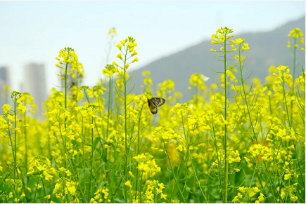 在梅華城市花園、前山濱河公園,金浪翻滾、蝶舞蜂飛,黃燦燦的油菜花,像春天里的水墨畫,清風(fēng)拂過,仿佛撲面而來的春日樂章。