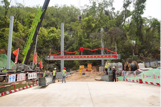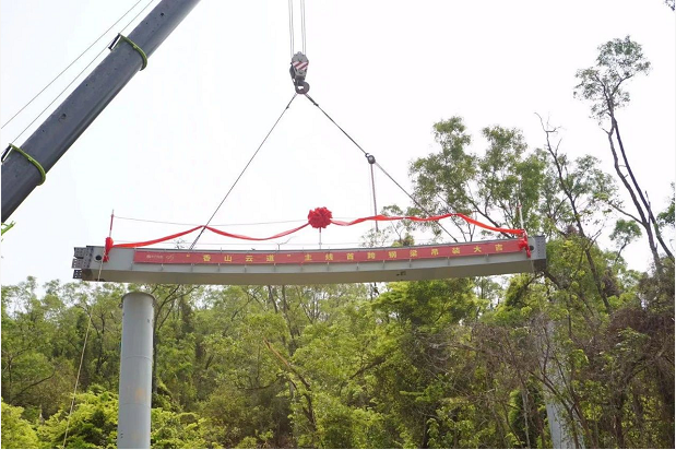 因香山云道作業(yè)處山林陡峭,整條云道共需安裝630座鋼梁。主線首跨鋼梁吊裝是按照先導(dǎo)試點的原則,實行首件工程制度——以首件工程樣板示范,引領(lǐng)后續(xù)各標(biāo)段同類工程的標(biāo)準化施工。首跨鋼梁吊裝完成后,陸續(xù)吊裝在山林中的鋼梁將成為撐起香山云道的脊梁。