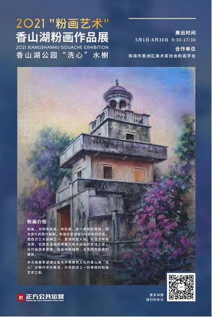 本次展覽在香山湖“洗心”水榭內(nèi)舉辦。在富有嶺南建筑文化氛圍的襯托下,感受粉畫的藝術(shù)思潮,不斷提高審美能力和藝術(shù)素養(yǎng),讓市民游客踏上精彩的粉畫藝術(shù)之旅。