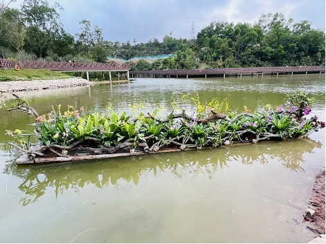 作品地點(diǎn):香山湖公園二期湖中竹筏