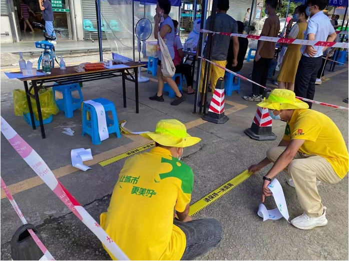 黨員干部靠前指揮,廣大黨員帶頭支援。6月8日-9日,由公司班子帶領(lǐng)千余名員工分成50個分隊(duì),奔赴南屏鎮(zhèn)、梅華街道、灣仔街道、香灣街道、吉大街道、翠香街道、拱北街道等7個鎮(zhèn)街,支援開展核酸檢測工作。白衣請?jiān)?,星火馳援。在疫情防控的關(guān)鍵時刻,正方小黃人積極參與支援核酸檢測工作,不畏險(xiǎn)阻、逆風(fēng)前行、義無反顧地奔赴各個核酸檢測點(diǎn),為“白衣天使”們做好最堅(jiān)實(shí)的保障。帳篷搭建、警示帶布置、物資擺放、穿戴防護(hù)道具,所有工作準(zhǔn)備完畢,正式開始核酸檢測工作。
